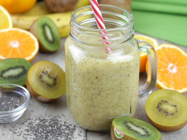Smoothie de kiwi, plátano, naranja y chía | batido de frutas sin leche