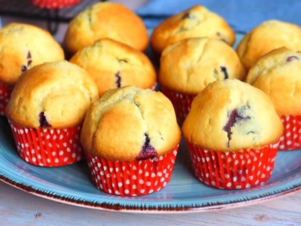 Magdalenas esponjosas con arándanos. Te enseño cómo conseguir una bonita montañita