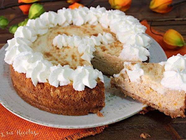 Tarta sin horno de queso cremosa y con doble toque de melocotón