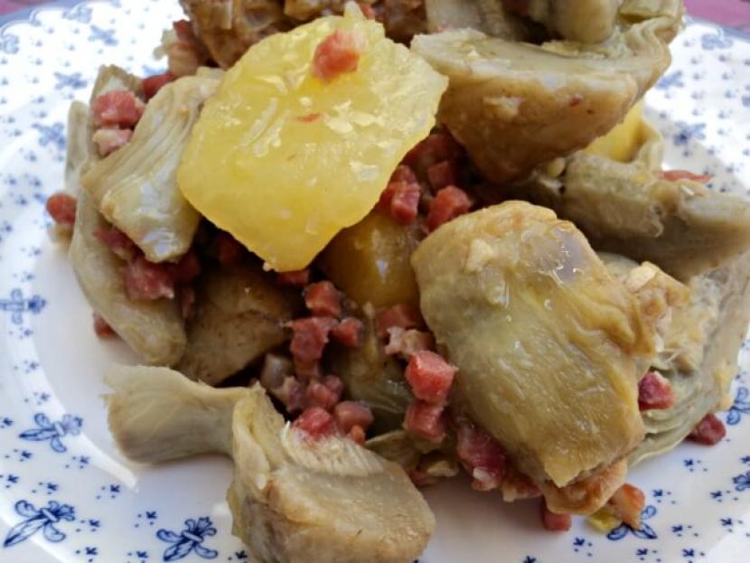 Alcachofas con patatas y jamón