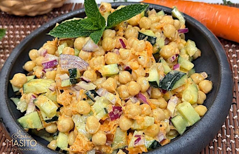 Hummus con calabacín plancha y garbanzos fritos especiados