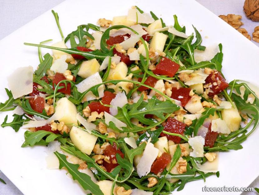 Ensalada de rúcula y manzana con vinagreta de mielReceta de Rico no, ricotePublicada en Ensaladas Ver la receta paso a paso Quizás te interesen también estas recetasEnsalada de patata con bacon y salsa rancheraLa Cocina de MasitoTartar de salmón con mango y aguacateCaceroladasEnsalada de garbanzos con mangoLa Cocina de MasitoPipirranaAnna Recetas FácilesEmpedrat, ensalada de alubias y bacalaoMis Cosillas de CocinaEnsalada César de quesoAnna Recetas Fáciles