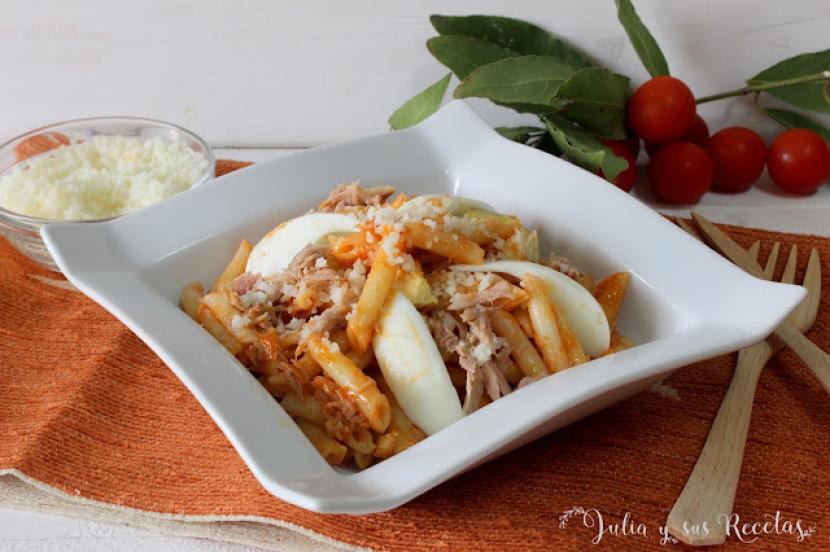 Macarrones con atún y huevo duro