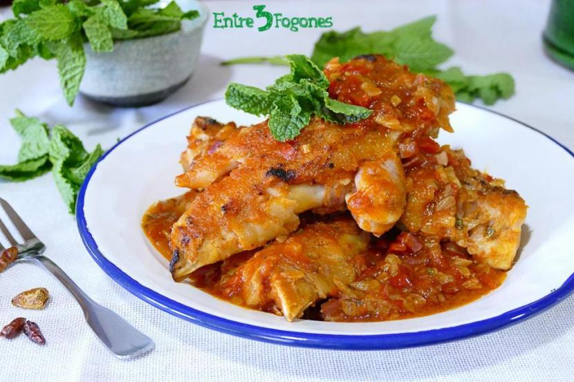 Manitas de cerdo en salsa de tomate a la hierbabuena
