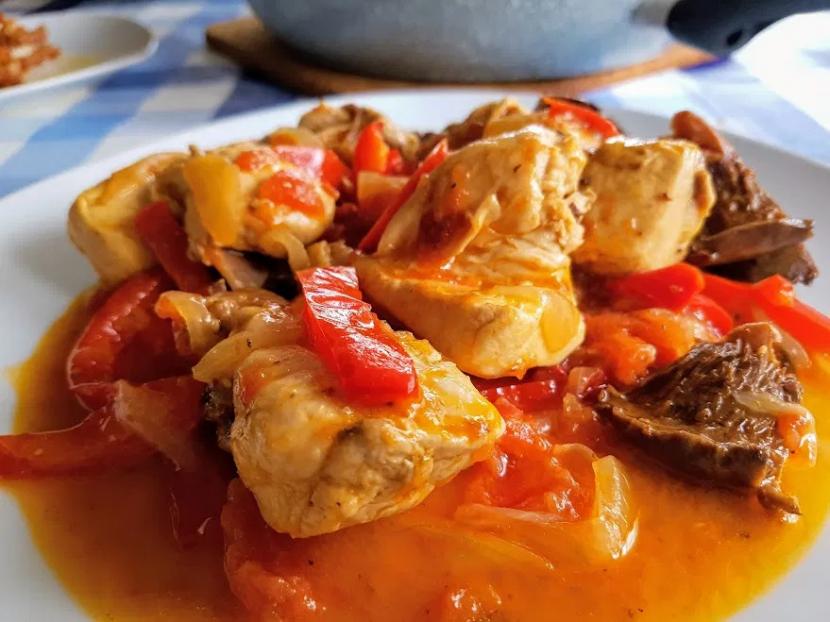 Pollo al chilindrónReceta de La Cocina de Pedro y YolandaPublicada en Carnes, pollo y otras aves Ver la receta paso a paso Quizás te interesen también estas recetasCostillas en freidora de aire con salsa barbacoa y mielEl Crepitar de los FogonesSolomillo de cerdo en salsa gauchaLa Cocina de MasitoPollo en salsa de la abuelacocineraymadreAbóndigas con tomateJulia y sus RecetasTernera al chocolateJulia y sus RecetasTiras de pollo fritoAnna Recetas Fáciles