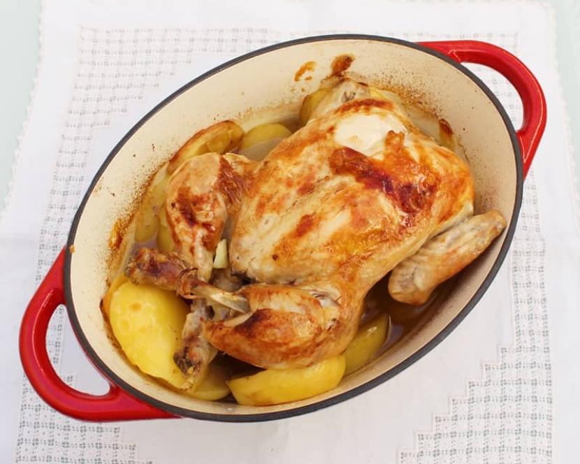 Pollo asado en el horno con cazuela
