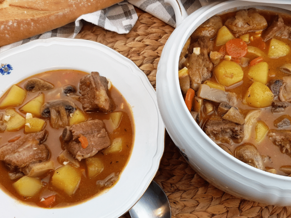 CODILLO DE CERDO GUISADO EN CAZUELA CON SALSA