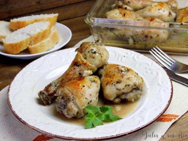 Jamoncitos de pollo al ajillo en microondas