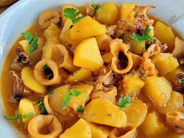 Guiso de calamares patatas y azafrán