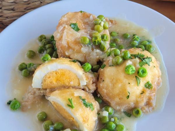 Huevos rebozados en salsa verde