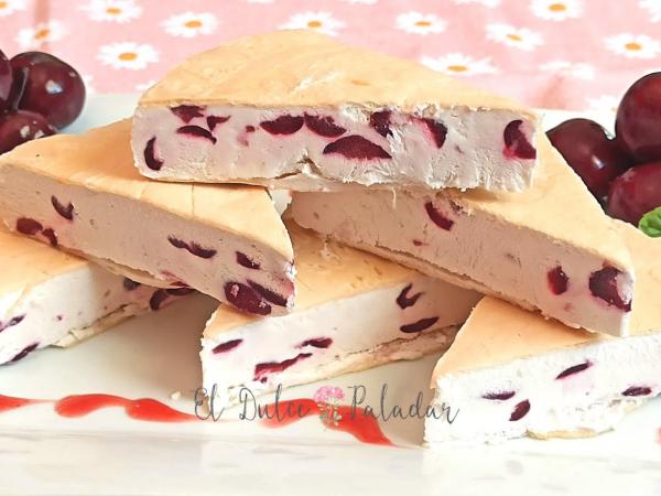 Helado de cerezas en obleas sin heladera