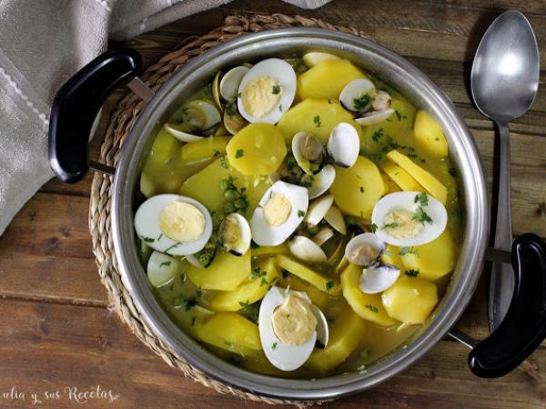 Patatas en salsa verde con almejas