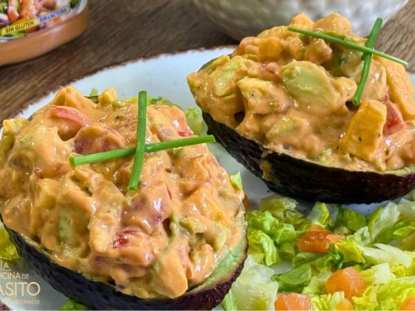 Aguacates rellenos de salmón y salsa cocktail