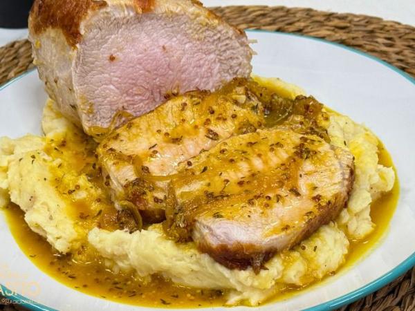 Lomo de cerdo en salsa de naranja miel y mostaza
