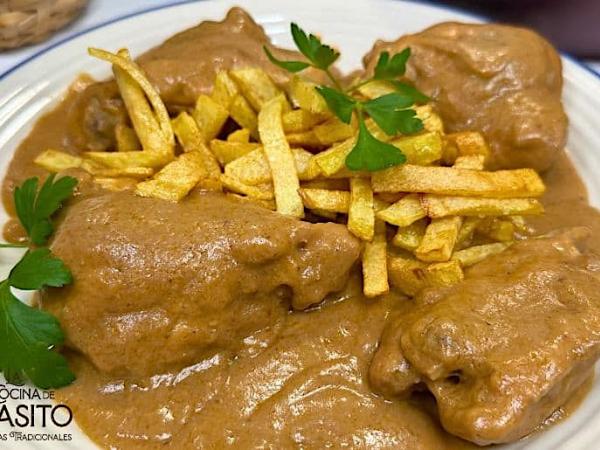 Filetes rusos en salsa con patatas fritas caseras