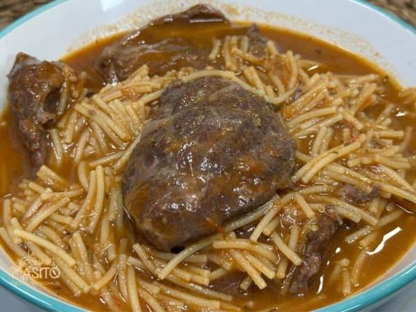 Cazuela de fideos con carrilleras de cerdo