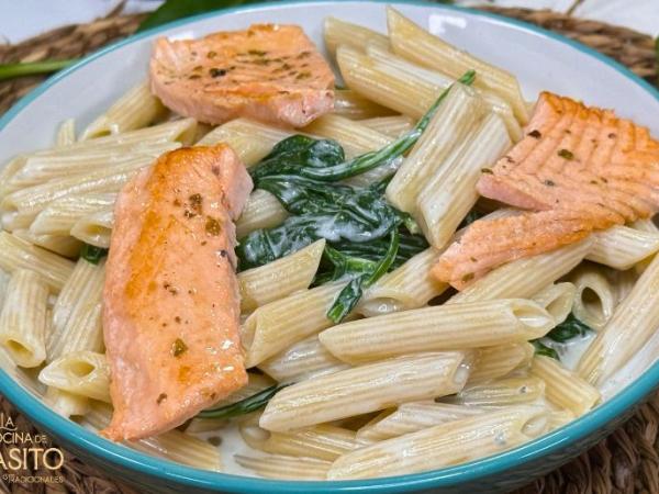 Macarrones con salmon y espinacas