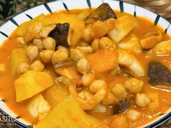 Patatas con sepia y garbanzos