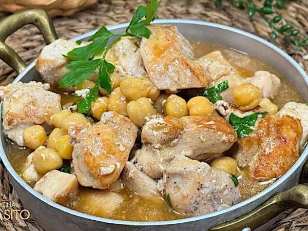 Pollo en salsa de ostras con garbanzos
