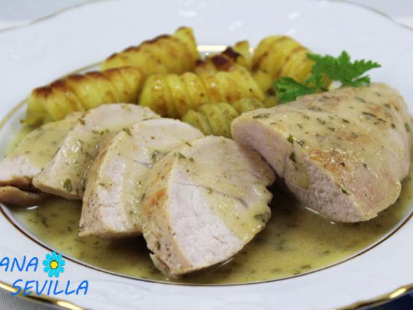 Solomillo de pavo en salsa de ajos thermomix
