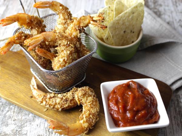 Langostinos rebozados con doritos | muy crujientes para dipear