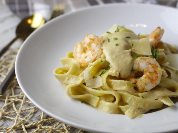 Pasta con salsa de gambas o langostinos | cremosa y sin lactosa