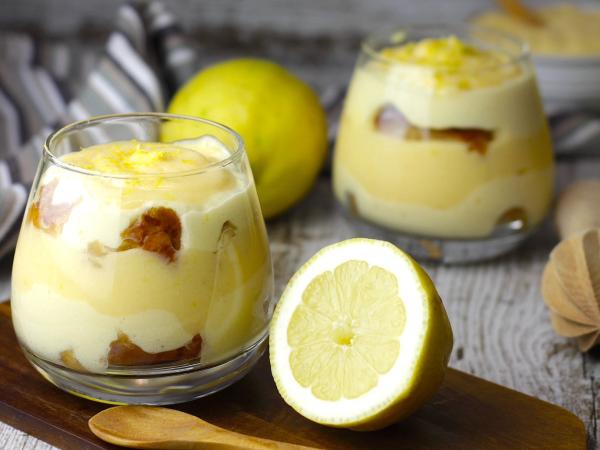 Tiramisú de limón en vasitos | con crema de limón o lemon curd sin lactosa