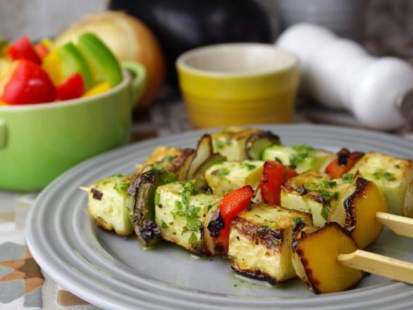 Brochetas de verduras | de calabacín, pimiento y cebolla