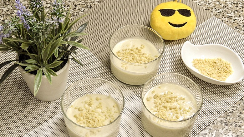 Para darle el punto final lo verteremos en vasitos y lo decoraremos con unos trocitos de almendra que teníamos previamente reservados. También se le puede añadir huevo duro o pasas, aunque con las almendras no fallaréis.
