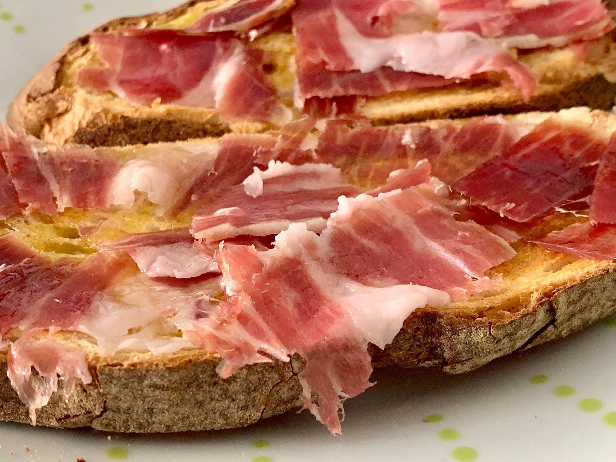 Un desayuno con jamón ibérico, relacionado con el uso del azúcar en el proceso de curación