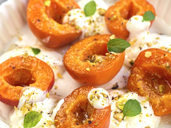 Albaricoques asados con yogur y pistachos | en freidora de aire