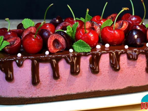Tarta de cerezas y chocolate, receta fácil sin horno