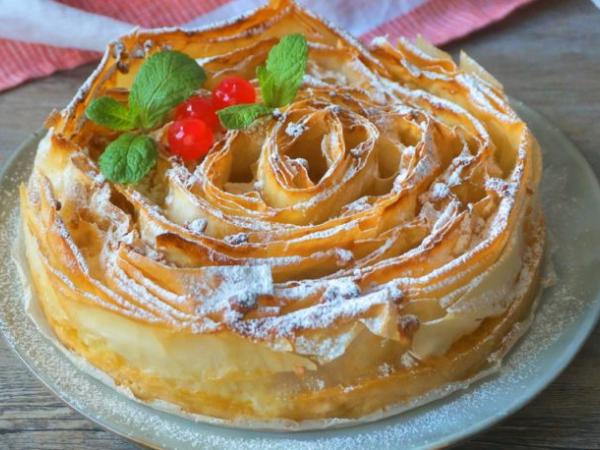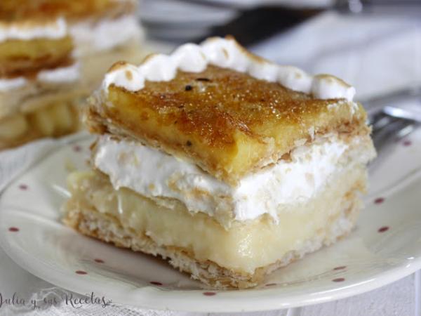 Tarta de hojaldre y crema. ¡Crujiente por fuera y cremosa por dentro!