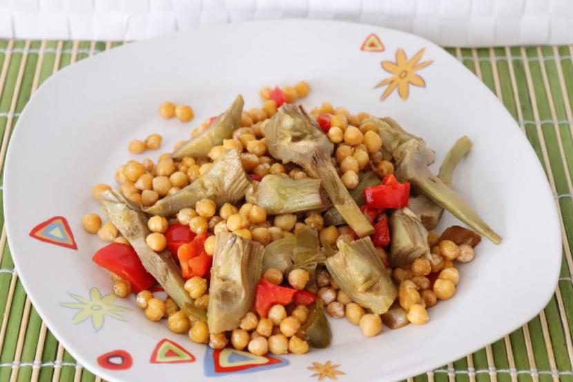 Hummus con calabacín plancha y garbanzos fritos especiados
