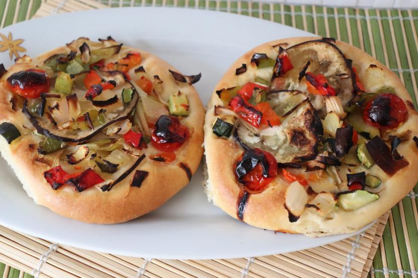 Cocas de berenjenas y cherry