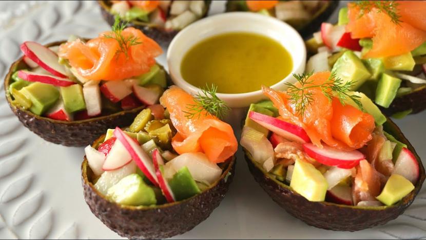 Aguacates rellenos de salmón. Entrante fácil y rápido