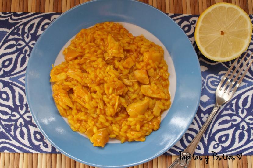 Arroz meloso de pollo al ajillo