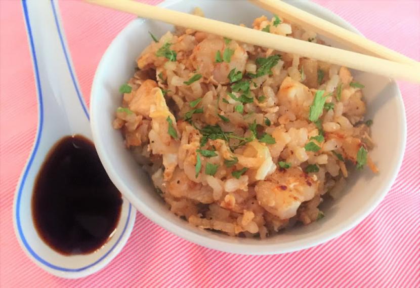 ARROZ FRITO CON POLLO Y GAMBAS (ESTILO THAI)