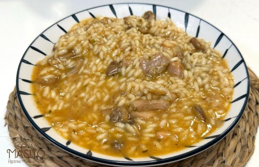 Arroz meloso de pollo al ajillo