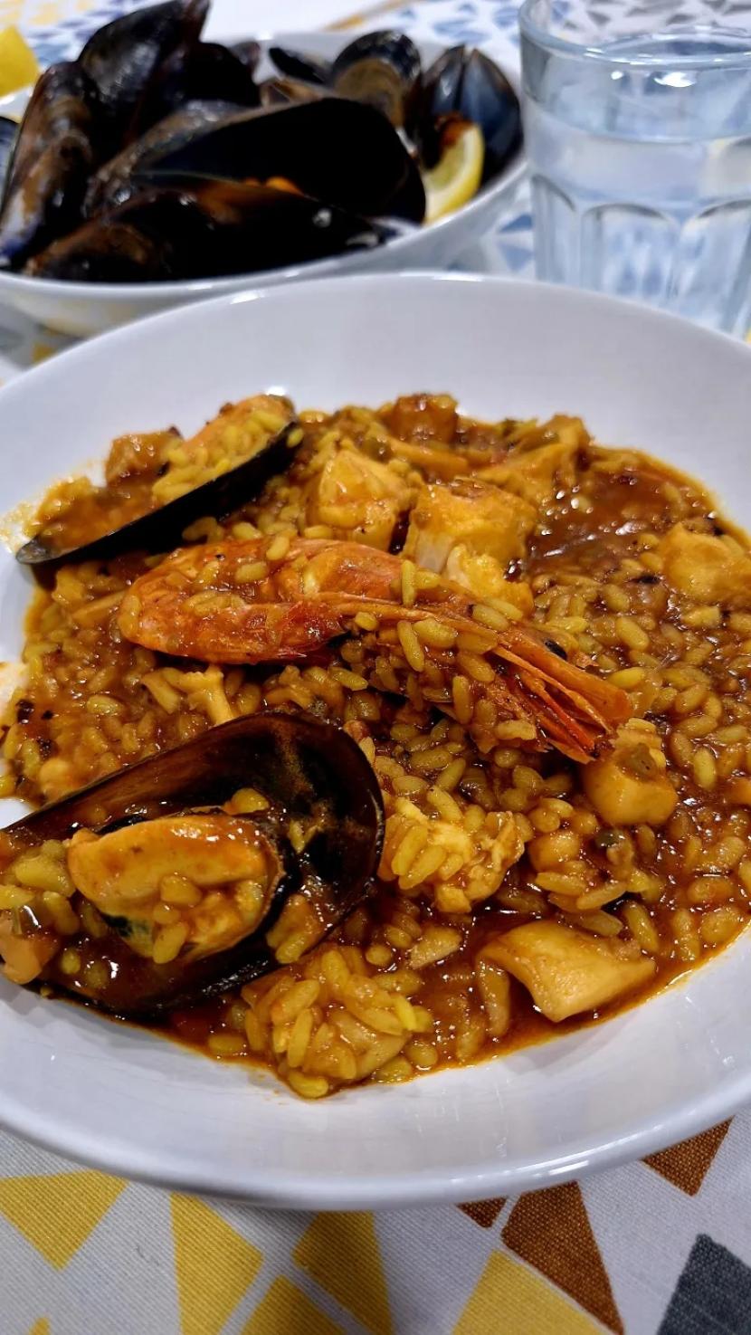 Arroz meloso de langostinos, sepia, pulpo y mejillones