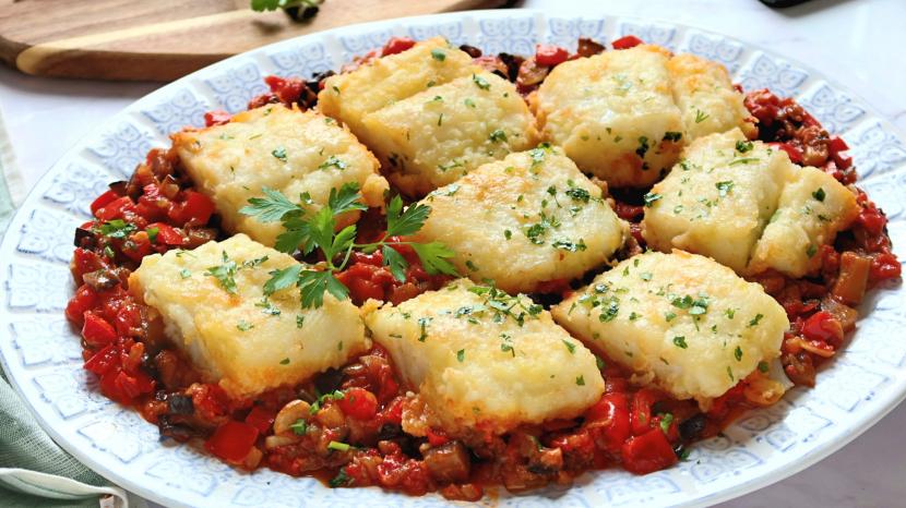 Bacalao con sanfaina tradicional. Receta para Navidad