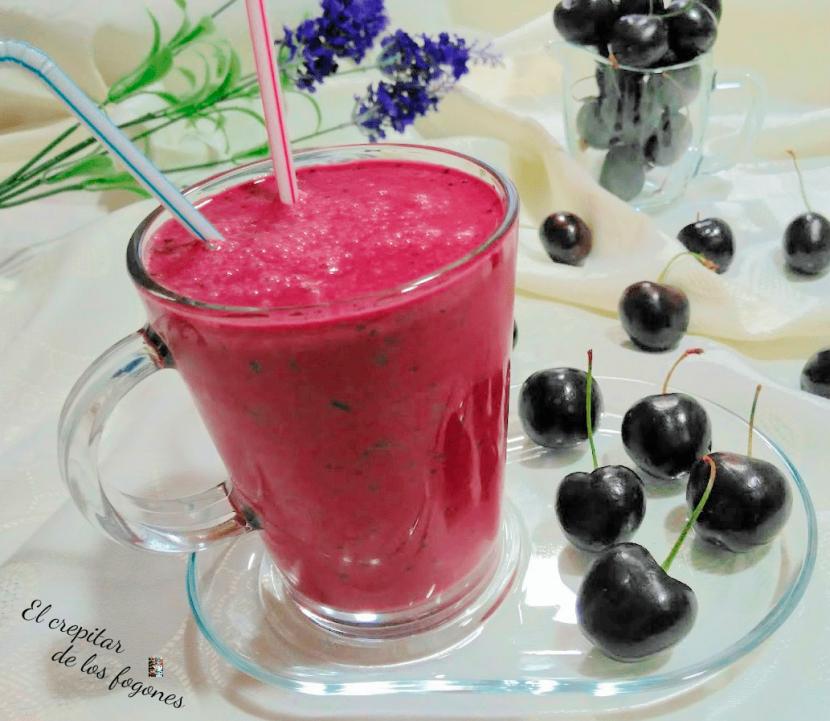 Batido de cerezas con helado de frutos del bosque casero
