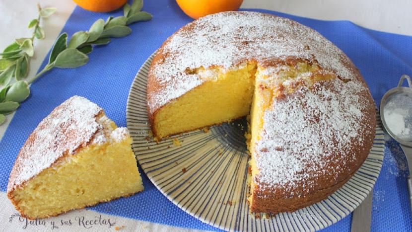 Bizcocho con zumo de naranja