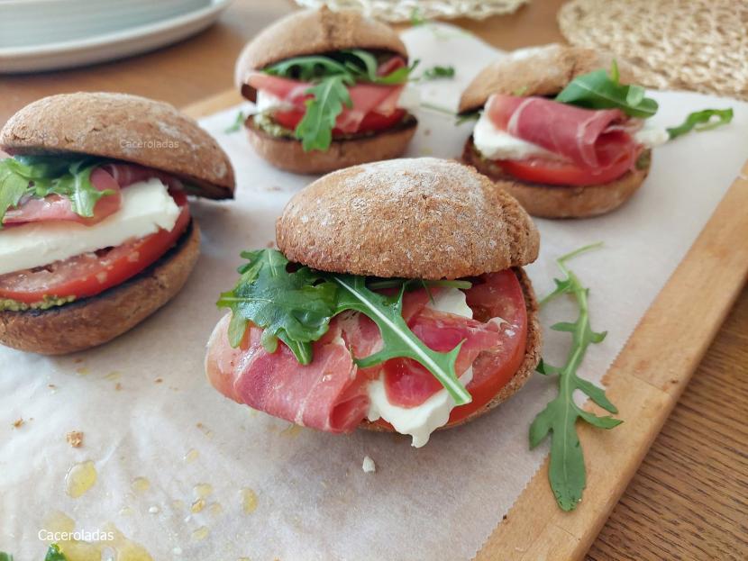 Bocadillo de jamón con pesto y queso fresco