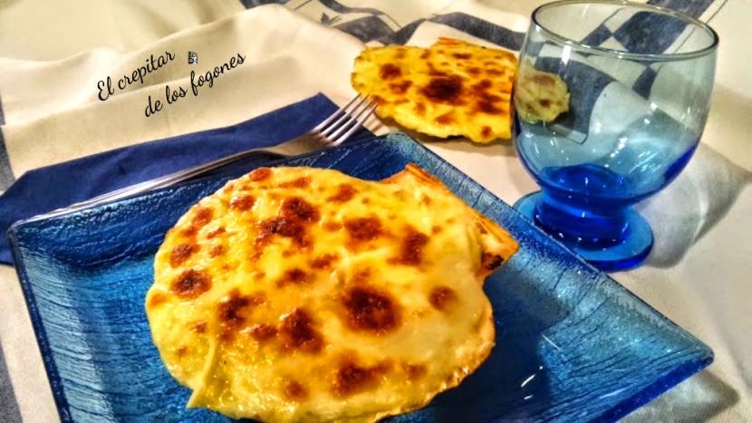 Conchas de vieira rellenas de merluza y gambas