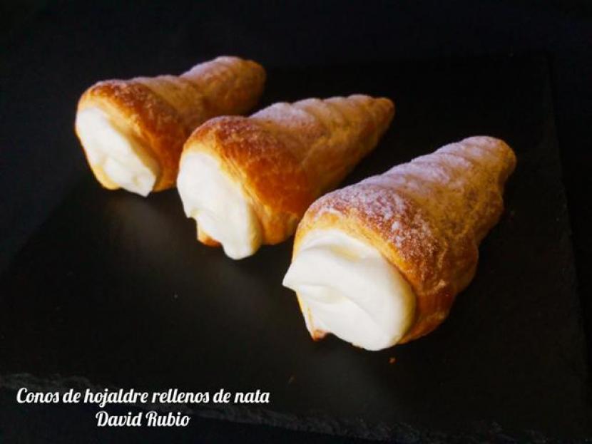 Conos de hojaldre rellenos de nata. una receta muy rica y sencilla.