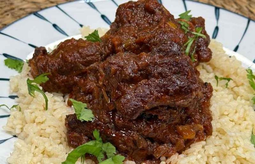 Costillas de cerdo con tomate en reducción de vino tinto