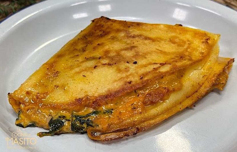 Crepes rellenos de bacon espinacas queso y salsa gaucha