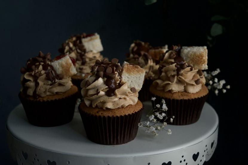 Cupcakes de mantequilla de cacahuetes y mermelada de fresa