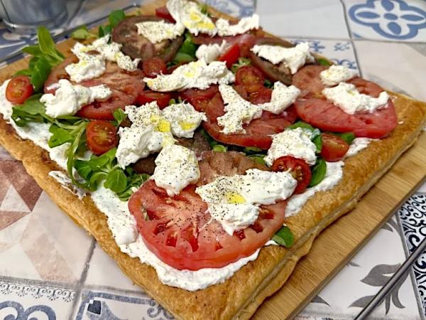 Coca de hojaldre con calabacines y queso